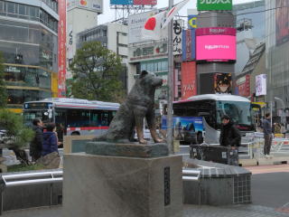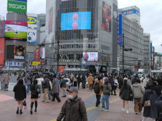 渋谷ハチ公 行列で写真待ち スクランブル交差点