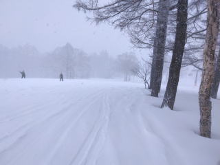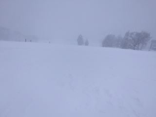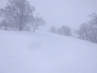 上ノ原コース 風雪を正面から受ける 広大なパラダイスコース レンタルスキーで滑走