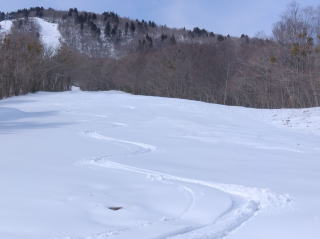 ここからスタート ふみ跡はなし カヤバタ上よりスキー場を望む