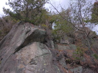 寒い日だけど岩登りに出かける。山を歩くのも大きな目的。花も実も何もなく どんよりした空模様 寒く思考も停止しそう。
