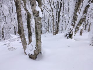 山頂ブナ斜面滑走 山頂斜面滑走 すぐの登り返し