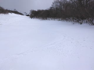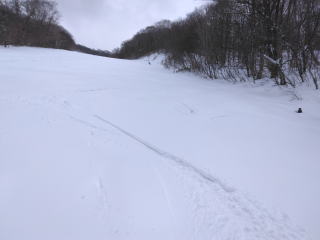 ![]() 山の西側上部斜面 リズミカルに滑る |